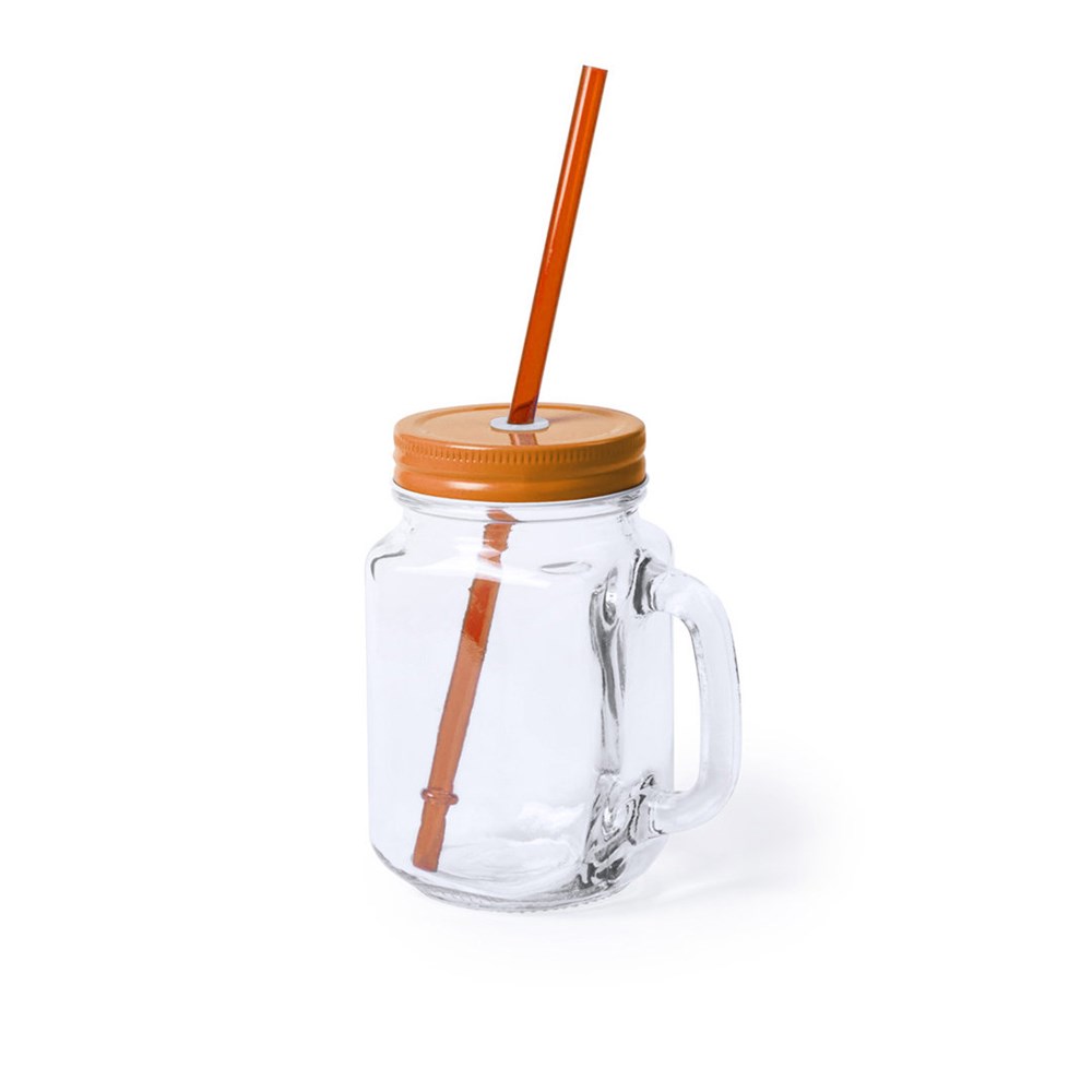 Vielseitig verwendbares Glas mit 500 ml Fassungsvermögen und Deckel mit Strohhalm in lebendigen Farben. Mit Schraubdeckel aus Metall. Präsentiert in einer attraktiven Designbox.