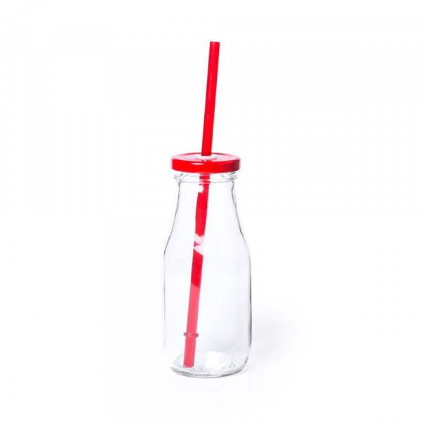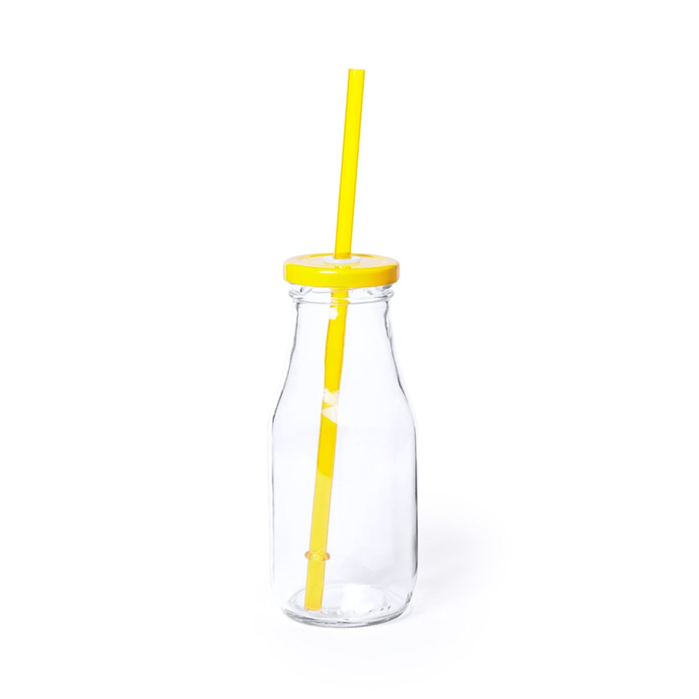 Vielseitig verwendbares Glas mit 320 ml Fassungsvermögen und Deckel mit Strohhalm in lebendigen Farben. Mit Schraubdeckel aus Metall. Präsentiert in einer attraktiven Designbox.