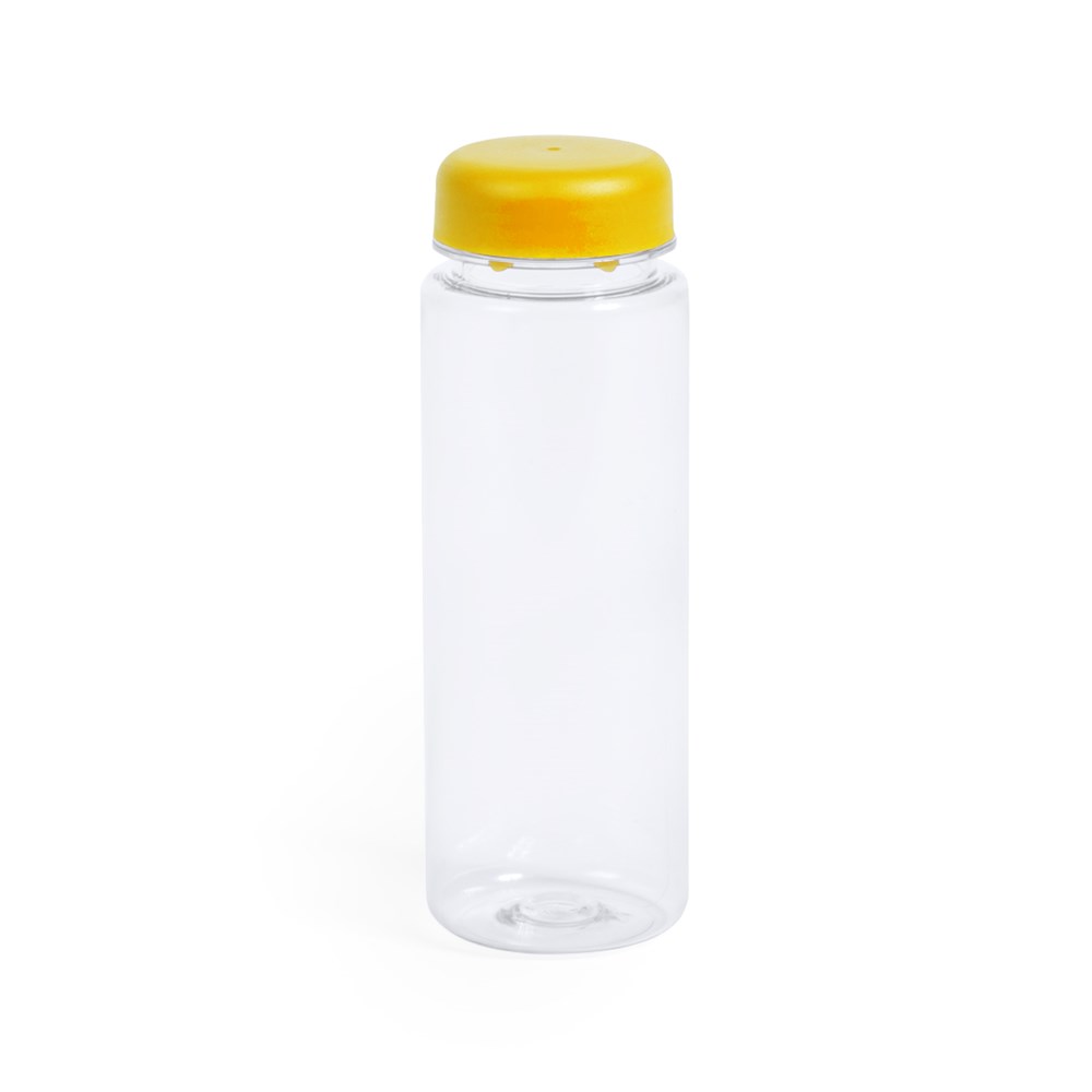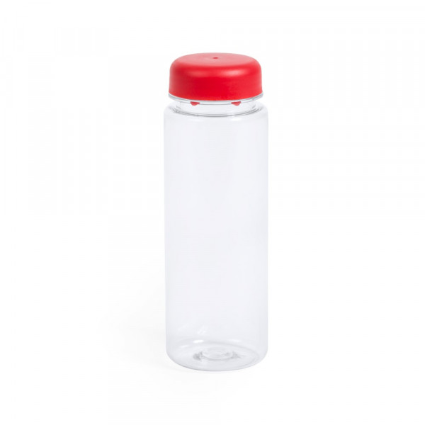Trinkflasche mit 500 ml Fassungsvermögen und transparentem Körper mit Deckel in verschiedenen lebendigen Farben.