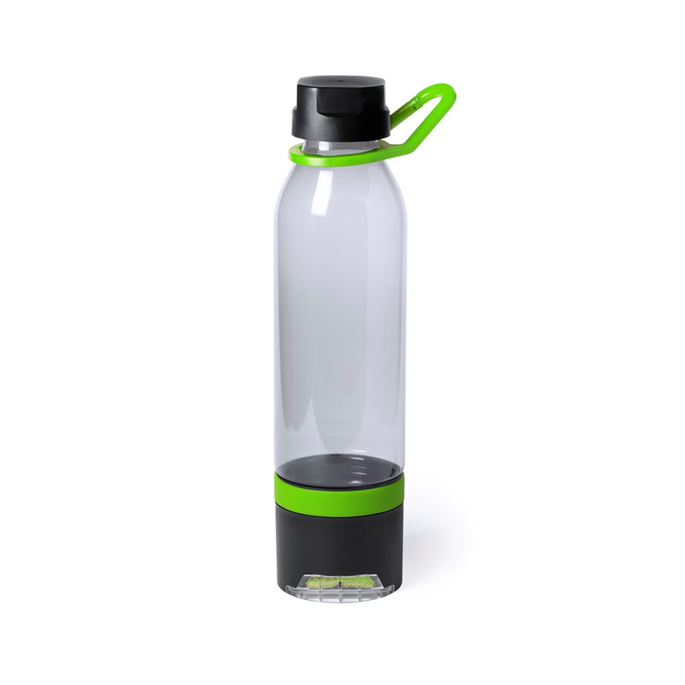 4-in-1 Sport-Trinkflasche mit 650 ml Fassungsvermögen und Körper in transparenter rauchfarbener Ausführung. Mit Sicherheitsverschluss und im Tragegriff integriertem Karabiner. Fach auf der Unterseite mit Handtuch aus kühlender SoftCool-Extreme-Mikrofaser (160 g/m2) mit UV-50-Schutz und den Maßen 79 x 21 cm. Mit Ständer für Mobiltelefon im Boden und integriertem Silikonarmband. Präsentiert in einer individuellen Box.