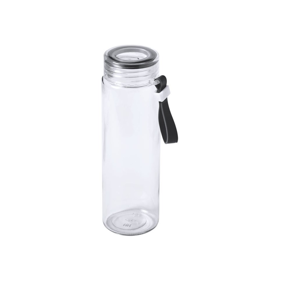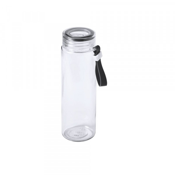 Flasche mit 420 ml Fassungsvermögen aus Glas. Transparenter Körper, mit Details in auffälligen Farben. Aufschraubbarer, BPA-freier Deckel und verstellbarer Tragegriff in passender Farbe. Präsentiert in einer attraktiven Design-Box.