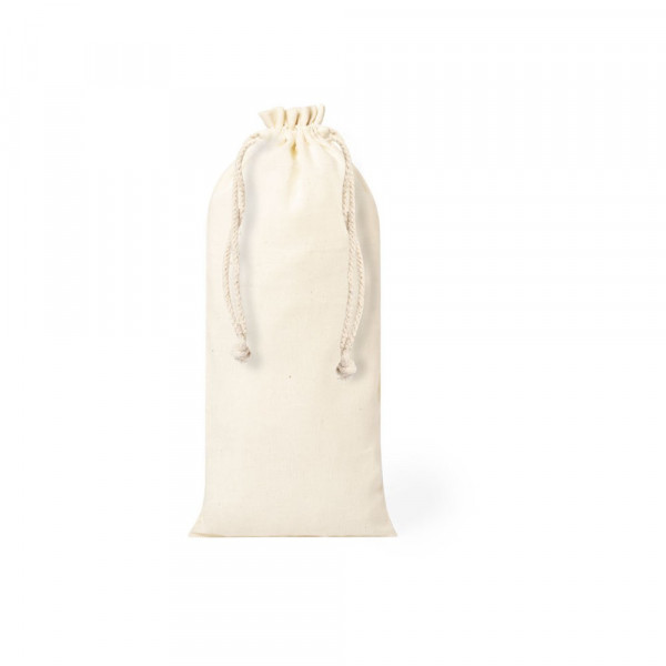 Tasche aus der Naturlinie, aus 100% Baumwolle 105g/m2.Größe 12x33 cm, mit genähter Verarbeitung und selbstschließenden Schnüren aus Baumwolle. Speziell für die Verpackung von Flaschen und Thermoskannen hergestellt.