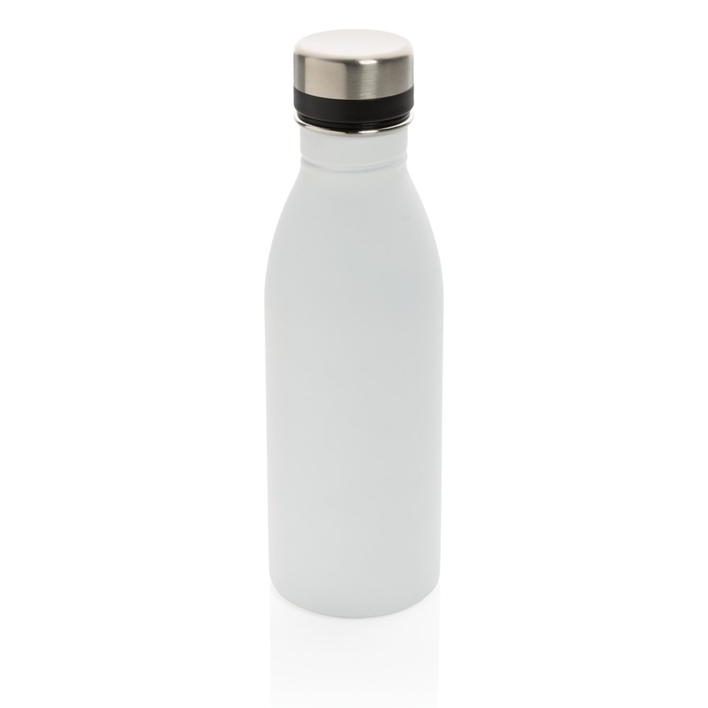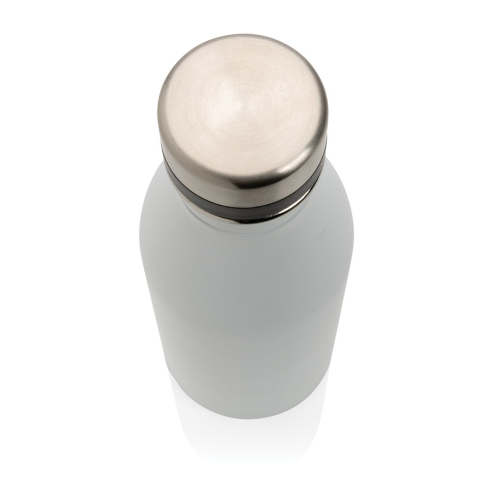 Diese Wasserflasche aus 18/8 Stahl ist ein Leichtgewicht und somit perfekt für den Alltag. Nur für kalte Getränke geeignet. In vielen Farben erhältlich. Die weiß-graue ist PMS Cool Gray 1. Inhalt: 500ml. Nur Handwäsche.