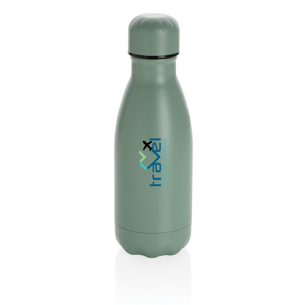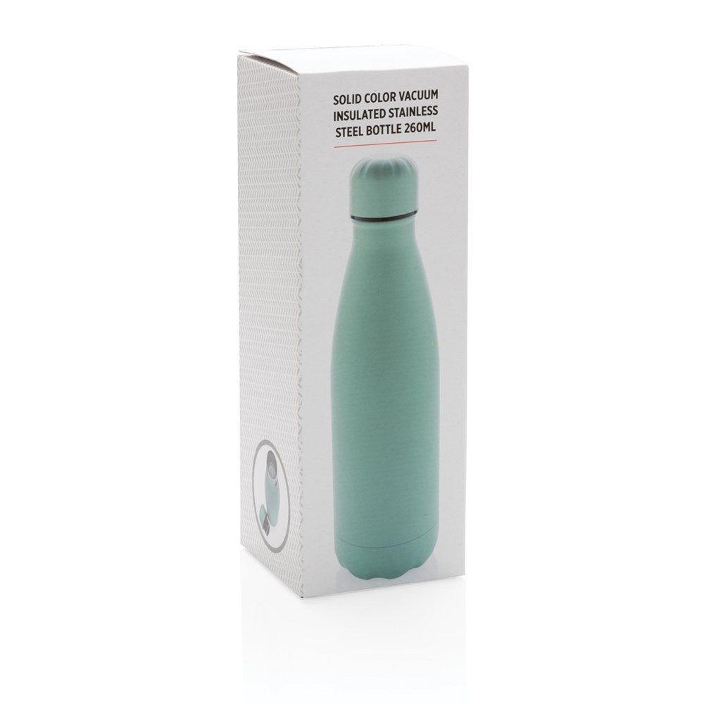 Steigern Sie Ihre tägliche Wasseraufnahme mit dieser einfarbigen, vakuumisolierten Edelstahlflasche. Die Flasche hält gekühlte Getränke bis zu 15 Stunden kalt und heiße Getränke bis zu 5 Stunden warm. Da sie in die in die meisten Getränkehalter passt, hält diese schlanke Wasserflasche Sie auch unterwegs mit Ihrem Getränk versorgt; wo immer Sie sind. Aufgrund der Größe auch perfekt für Kinder geeignet oder um sie in Ihrer Tasche zu verstauen. Inhalt: 260. Nur Handwäsche.