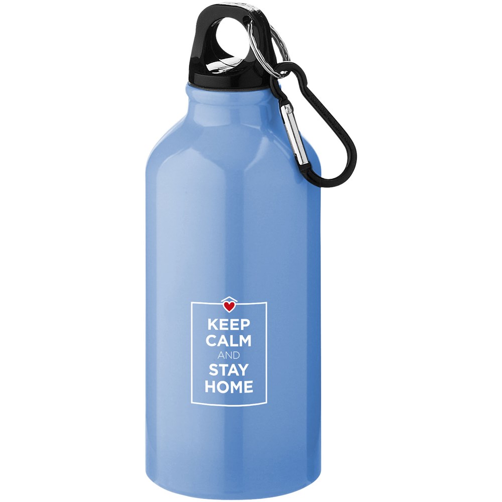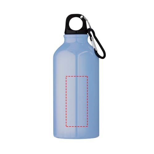Einwandige Flasche mit Schraubverschluss. Karabiner ist nicht für das Klettern geeignet. Volumen 400ml.