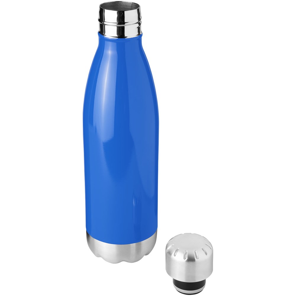 Die doppelwandige Vakuumkonstruktion aus Edelstahl ermöglicht es, dass Ihr Getränk 15 Stunden lang kalt bzw. mindestens 5 Stunden lang heiß bleibt. Die Konstruktion verhindert auch eine Kondensation an der Außenseite der Flasche. Schraubdeckel aus Edelstahl. Das Fassungsvermögen beträgt 510 ml.