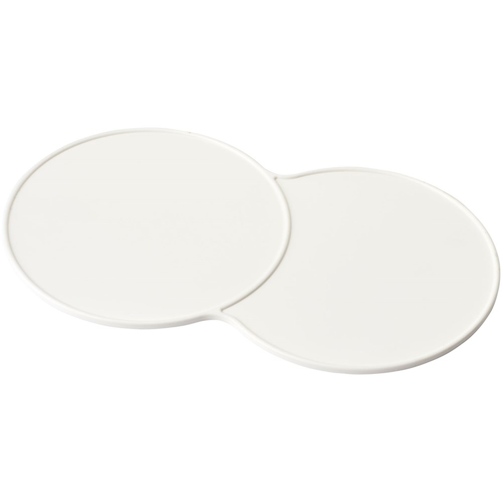 Vergrößerter Untersetzer mit Platz für mehrere Getränke oder eine Kombination aus einem Getränk und einem Keks.