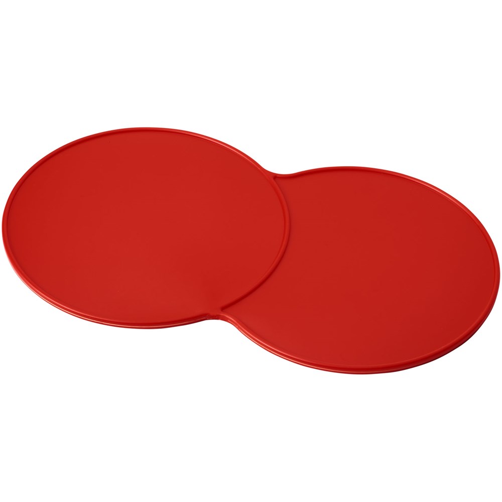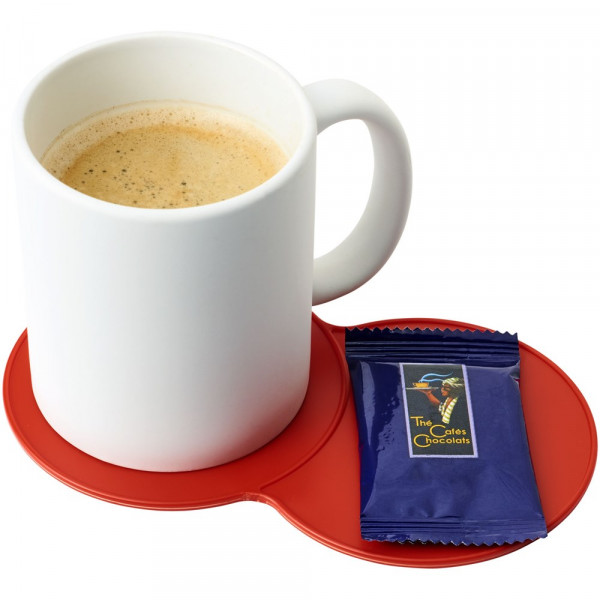 Vergrößerter Untersetzer mit Platz für mehrere Getränke oder eine Kombination aus einem Getränk und einem Keks.