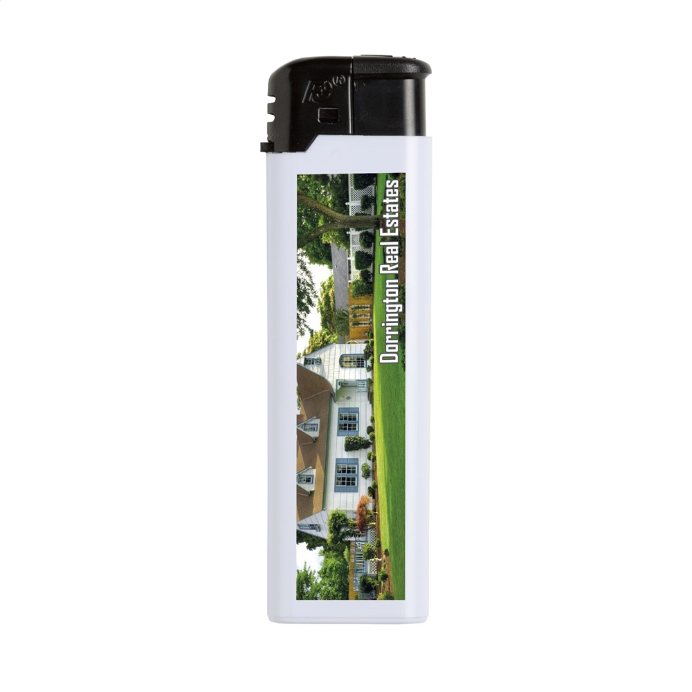 Elektronisches, nachfüllbares Feuerzeug der Marke Flameclub®. Mit Flammenregler. Mit Kindersicherung. TÜV-zertifiziert