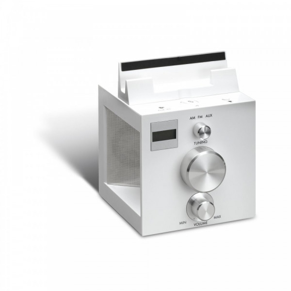 Kunststoff, weiß, Batterie: inklusive, Displaybeleuchtung, Lautsprecher für MP3 Player, LED-Farbe: weiß, Radio FM/AM, Standfuß