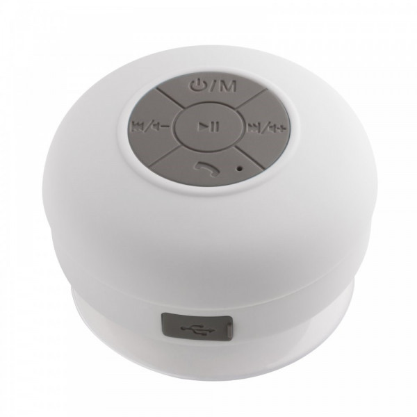 Das IPX4 spritzwassergeschützte Duschradio mit Lautsprecher und Freisprecheinrichtung funktioniert mit Bluetooth® und hat eine Reichweite von bis zu 10 m. Im Lieferumfang enthalten ist ein USB zu Micro USB Kabel zum Aufladen des Geräts.
