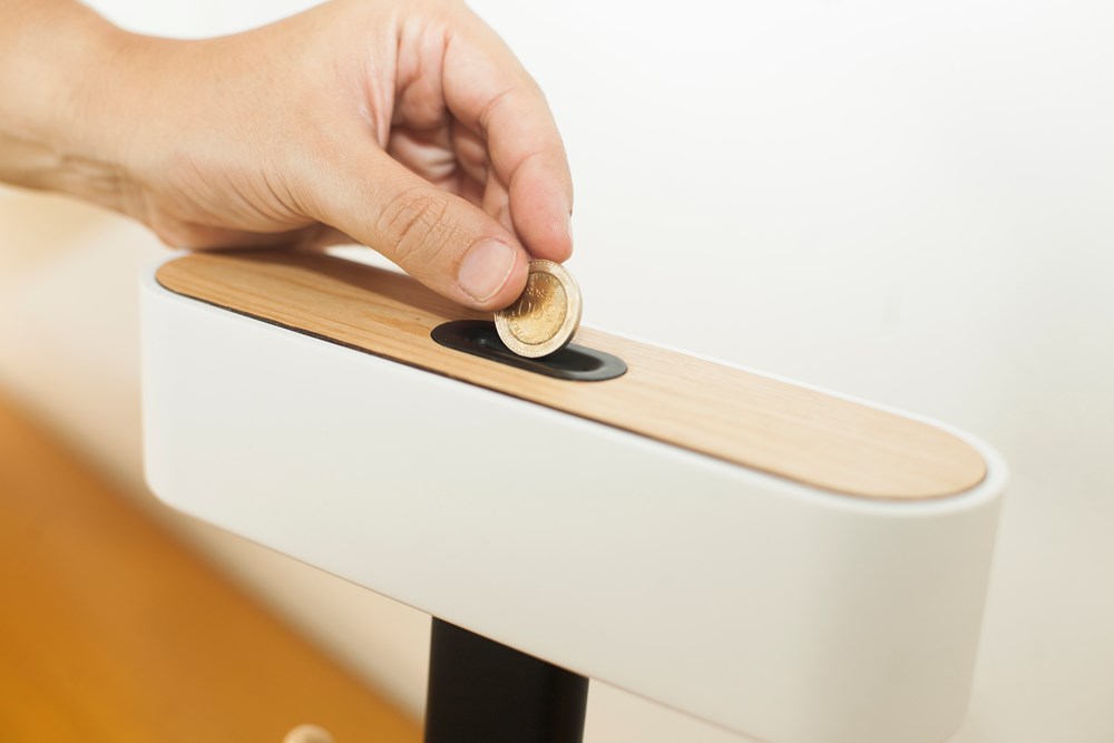 Wenn Sie jedes Mal bezahlen, wenn Sie die CoinLamp einschalten, füllen Sie das Sparschwein fast unbemerkt in die Tischlampe. Um Ihre Münzen zurückzubekommen, schrauben Sie einfach den Boden der Lampe ab.