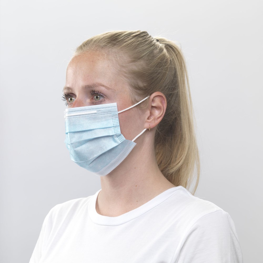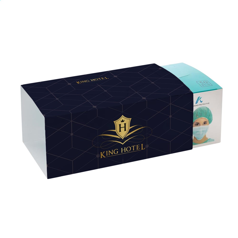 Hygienische 3-Lagen-Mundschutzmaske Typ II zum einmaligen Gebrauch. Mit elastischen Ohrschlaufen, Nasenbügel und Nasenaufsatz aus flexiblem Kunststoff/Metall für einen festen Sitz. Außen- und Innenschichten aus Polypropylen und Viskose . Integrierter Filter mit sehr hoher antibakterieller Wirkung (98%). Ideal für den Einsatz im öffentlichen Verkehr, auf Reisen und für Kontaktberufe. Dieses Produkt entspricht den europäischen Normen, Richtlinien und Standards: EN14683:2019+AC2019. Hergestellt in einer nach ISO 13485 zertifizierten Fabrik. Optional: mit farblich abgestimmter Schuber. Verpackt in Kartons mit 50 Masken und KANN NUR IN VIELFACHEN VON 50 STÜCK BESTELLT WERDEN. BEI GROßEN MENGEN BITTE EIN ANGEBOT ANFORDERN.