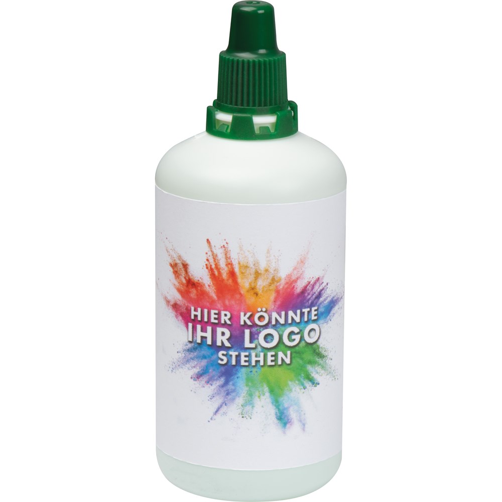 Praktisches Desinfektionsmittel mit 100ml Desinfektionsgel für unterwegs oder zuhause. Das Gel mit 65% Ethanol wirkt gegen Bakterien und bestimmte Viren. Ihre Werbung drucken wir auf ein Etikett und bringen es auf der Flasche an.