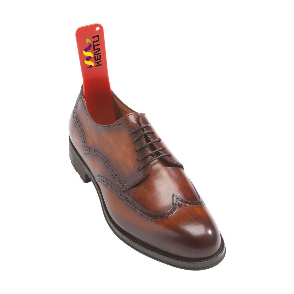 Fester Schuhlöffel aus Plastik. Ein praktischer Werbeträger. Eine passende Anziehhilfe. mehr