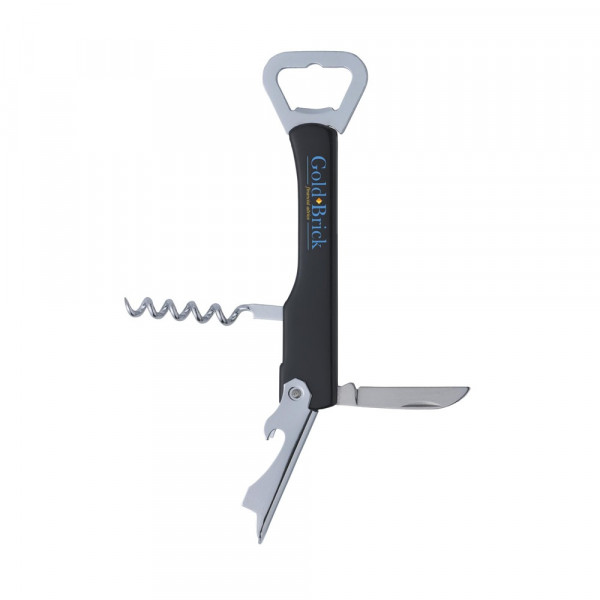 Metall, Klappkellnermesser mit ABS-Griff und 4 Funktionen: Korkenzieher, 2 Flaschenöffner, Kapselschneider. Pro Stück in einer Verpackung.