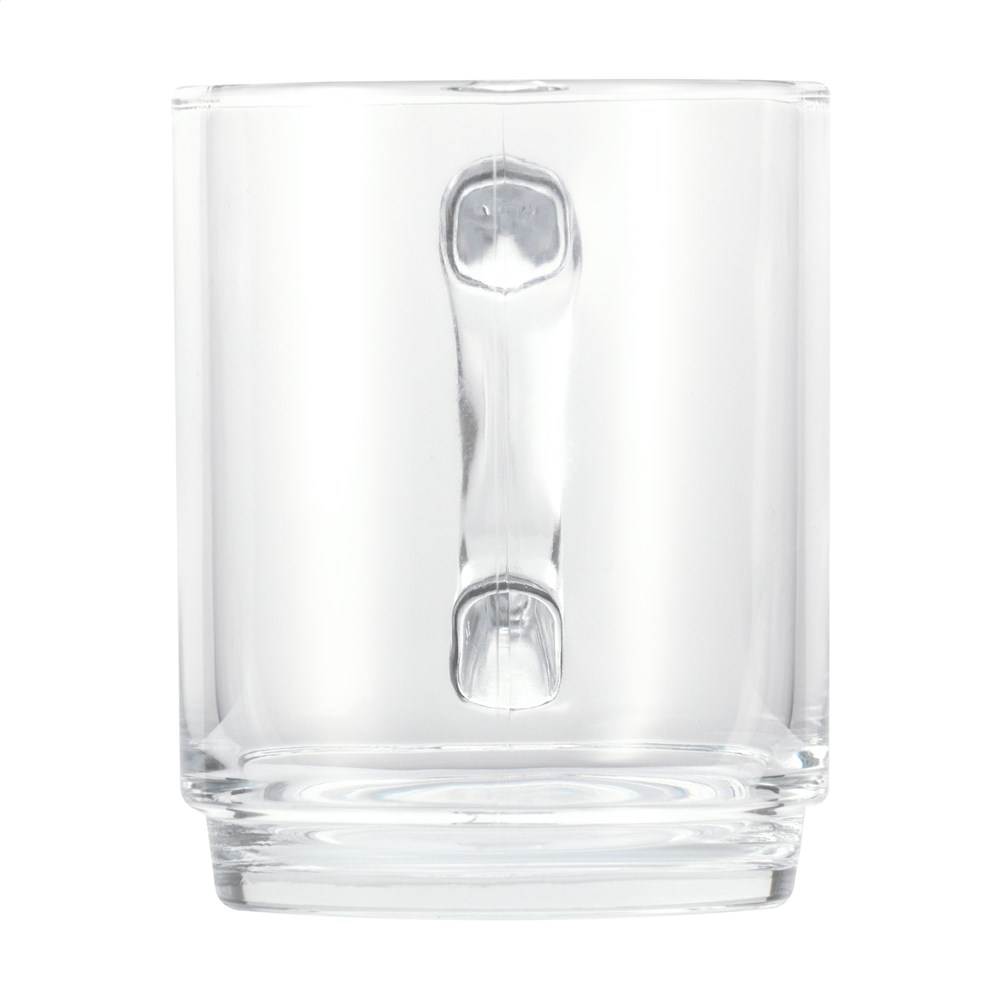Stapelbares Teeglas aus starkem, dickem Glas. Mit großzügigem Henkel. Fassungsvermögen 250 ml.