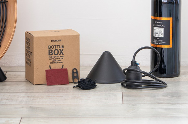 WOW! Wir lieben DIY und wir teilen diese Leidenschaft gerne mit Ihnen. Darum haben wir die Bottle Box geschaffen. Was ist in der Box? Alles, was Sie für Ihre eigene Designer-Lampe brauchen. Eine detaillierte Anleitung führt Sie Schritt für Schritt durch den Prozess. Sie müssen nur eine leere Weinflasche mit zum Tisch bringen. Auch toll als Geschenk. Aber wir empfehlen, auch eine Flasche Wein dazu zu schenken, eine volle.