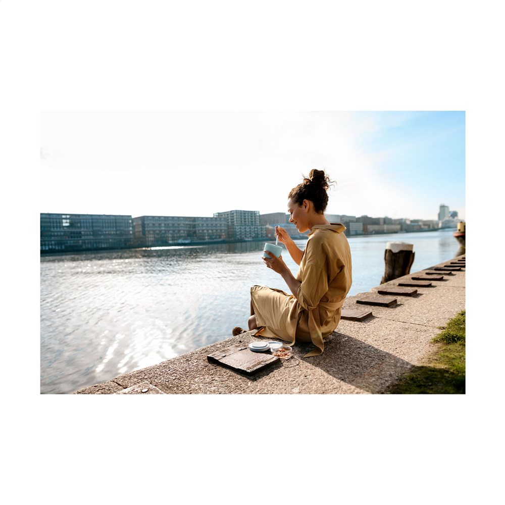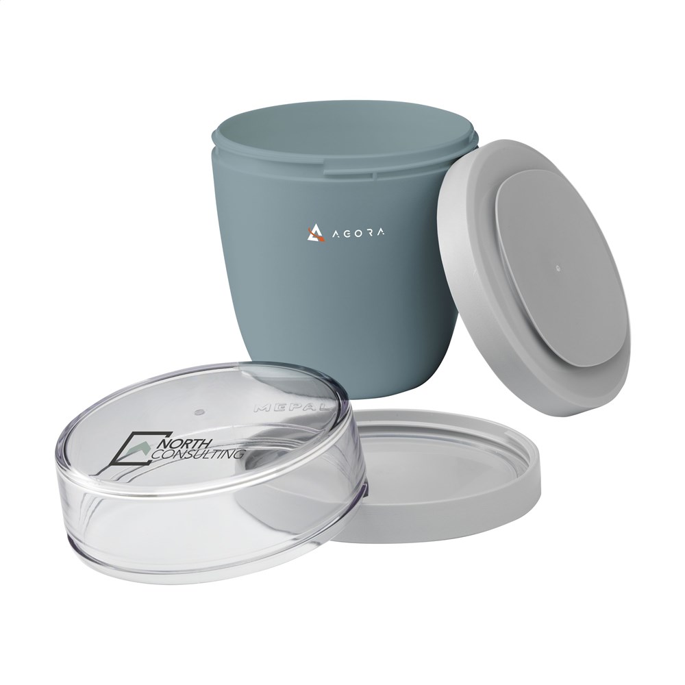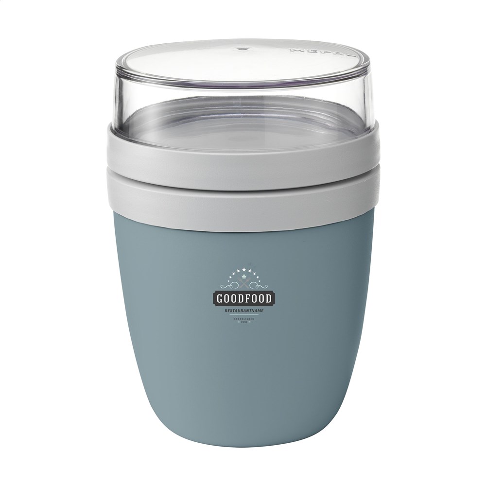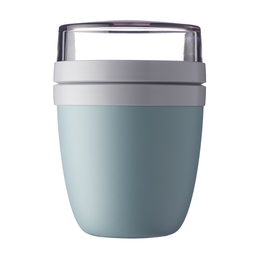 Dieser haltbare Plastikbehälter der Marke Mepal ist ein praktisches Produkt zum Mitführen von Lebensmitteln. Der Behälter hat zwei Teile. Durch eine Drehbewegung lassen sich die beiden Teile voneinander trennen. Beide Teile haben einen separaten Deckel. Die ideale Lösung, um Geschmiere beim Mischen zu vermeiden. Der Inhalt des oberen, transparenten Behälters beträgt 200 ml, d. h. dort ist Platz für ca. 75 g Müsli oder Obst. Der Inhalt des unteren Behälters bietet mit 500 ml genug Platz für eine Portion Suppe, Nudeln oder Joghurt. Ein qualitativ hochwertiges Produkt. BPA-frei, lebensmittelgeprüft und auslaufsicher. Geeignet für Mikrowelle (außer Deckel) und Gefriertruhe. 2 Jahre Mepal Herstellergarantie. Made in Holland.
