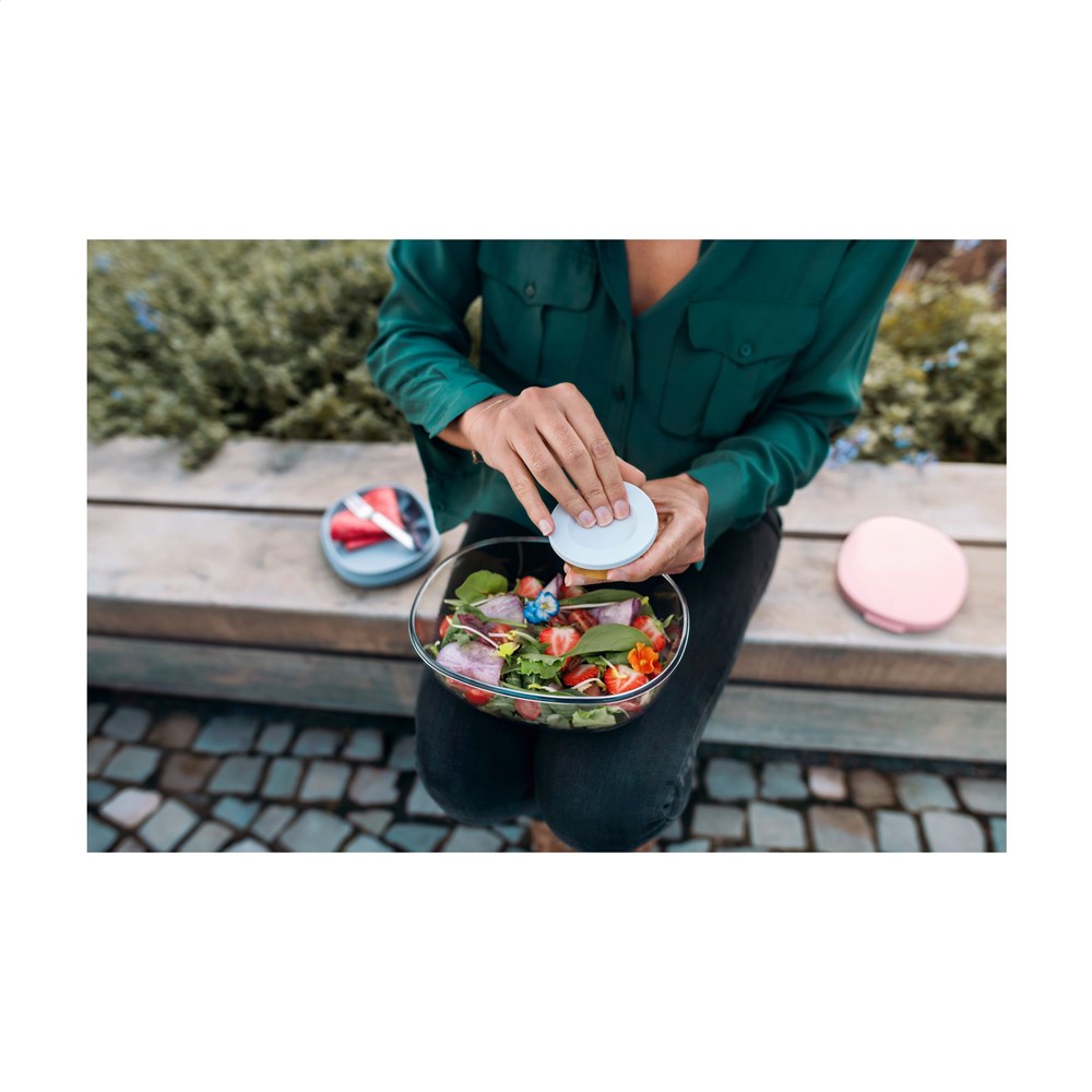 Robuste Plastiksalatbox mit Deckel der Marke Mepal. Großzügiges Format. Inklusive Mini-Box für Dressings oder andere Zutaten. Die transparente Box bietet ausreichend Platz, um den Salat vor dem Essen zu mischen. Hochqualitativ und praktisch unzerbrechlich. BPA-frei und geeignet für Lebensmittel. 2 Jahre Mepal Herstellergarantie. Made in Holland. LAGERBESTANDSINFORMATION: Bis zu 1.000 Stück innerhalb von 10 Arbeitstagen verfügbar. Ausnahmen vorbehalten.