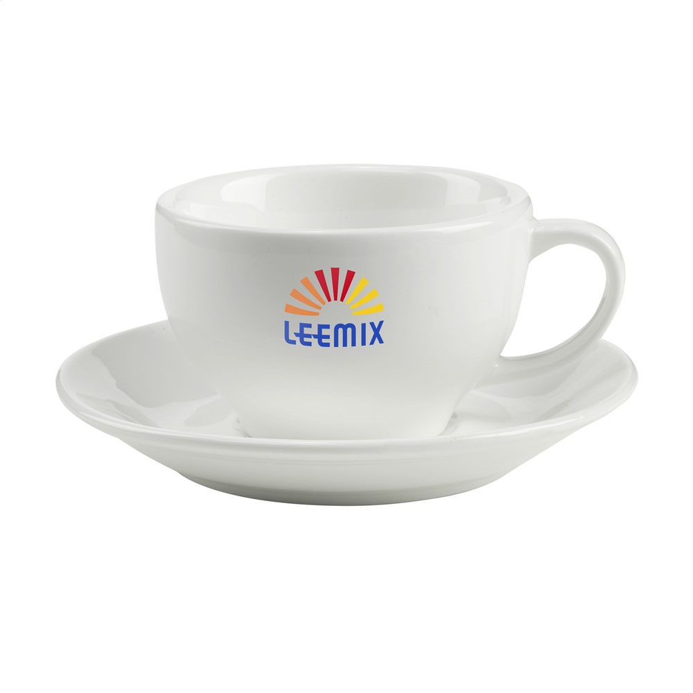 Hochwertige Keramik-Tasse und Untertasse, für Cappuccino. Fassungsvermögen 210 ml. Spülmaschinengeeignet. Der Aufdruck ist spülmaschinengeprüft und nach EN 12875-2 zertifiziert.