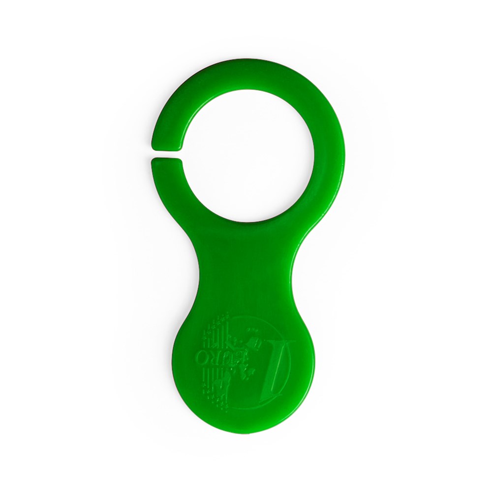Münz-Schlüsselanhänger mit coolem Euro-Design und in verschiedenen lebhaften Farben. Mit Befestigungskarabiner.