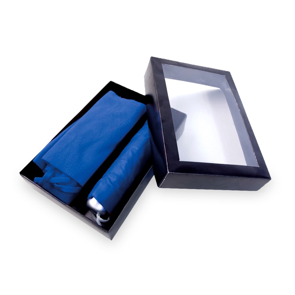Set aus Polar-Fleece Schal und farblich passendem Taschenschirm. Schal aus weichem, warmem Polar-Fleece (180 g/m2) mit Anti-Pilling-Behandlung und Fransenabschluß. Taschenschirm mit 8 Panelen aus widerstandsfähigem Polyester in kräftigen Farben. Mit 95 cm Durchmesser sowie manueller Öffnung. Zudem mit Metallstäben in Silber und Klettverschluss sowie Trageschlaufe am Griff. Präsentiert in einer individuellen schwarzen Box mit Fenster.