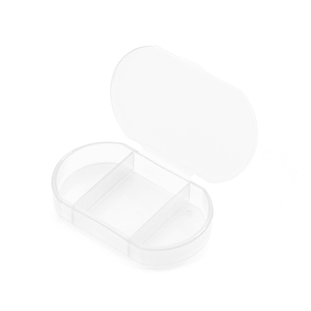 Halbtransparente Pillendose in kräftigen Farben. Mit 3 Fächern und Sicherheitsverschluss.