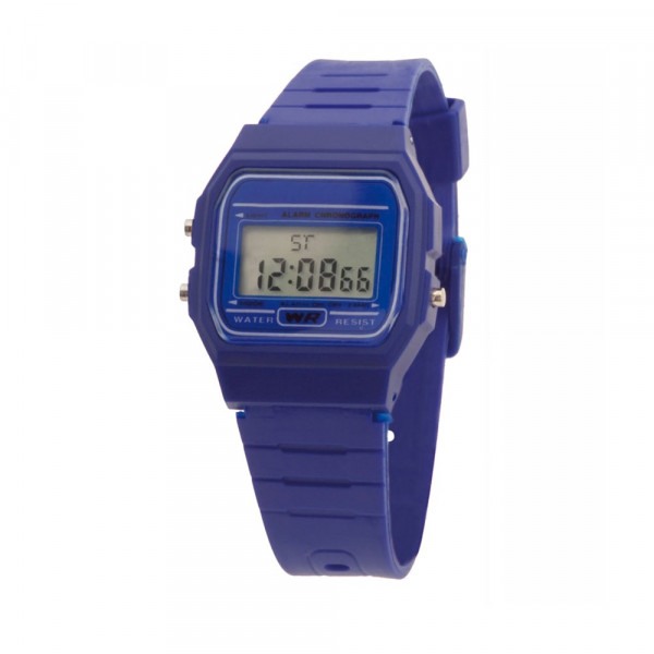 Digitale Armbanduhr mit Retro-Design in coolen Farben. Mit farblich passendem spritzwassergeschütztem Gehäuse und Armband, Timer-Funktion und Hintergrundbeleuchtung. Präsentiert in einer individuellen Tasche mit Verstärkungskarton.