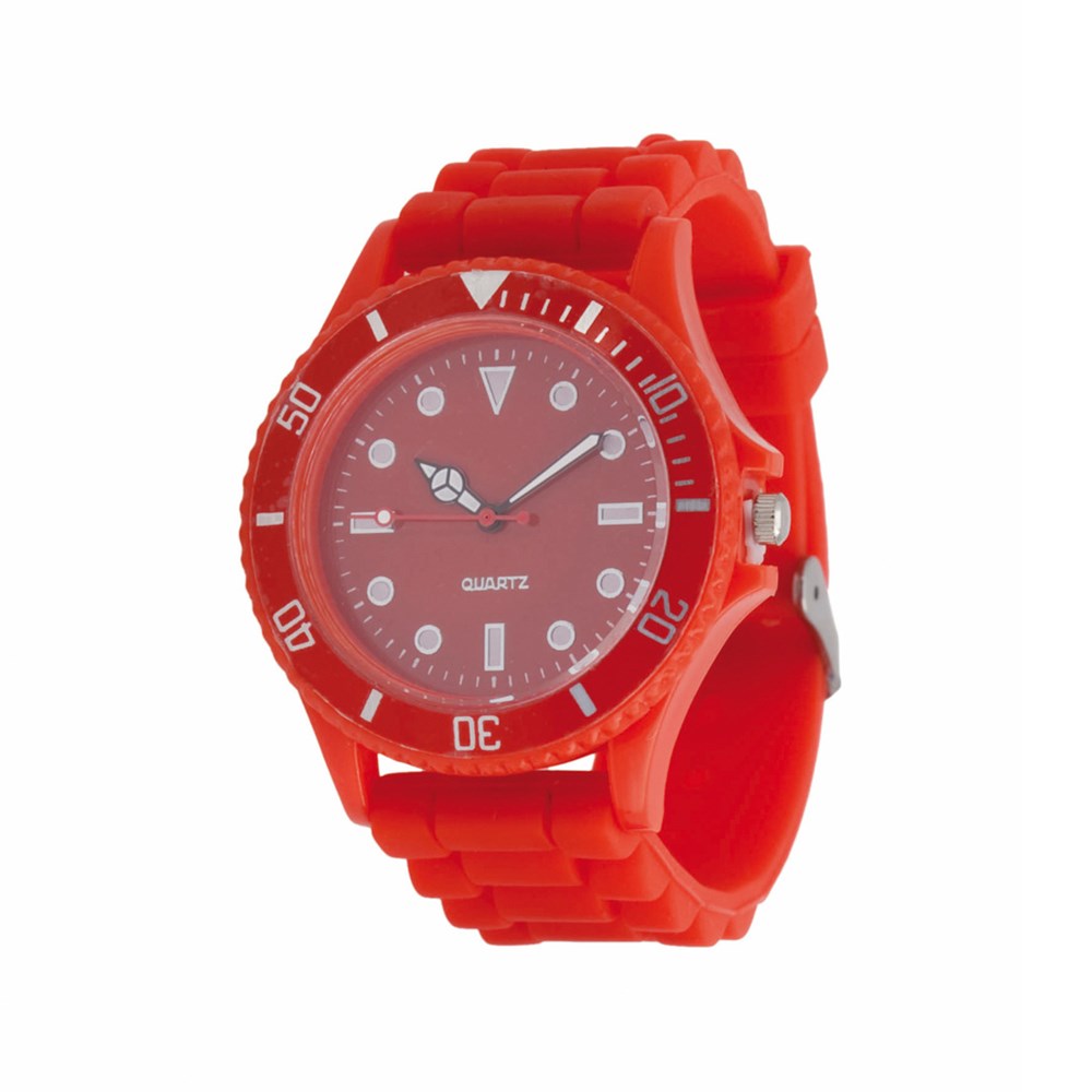 Chronograph-Armbanduhr in origineller Ausführung und lebendigen Farben. Spritzwassergeschützt. Mit Chronograph, analogem Zifferblatt sowie passendem Silikonarmband. Präsentiert in einer individuellen Tasche.