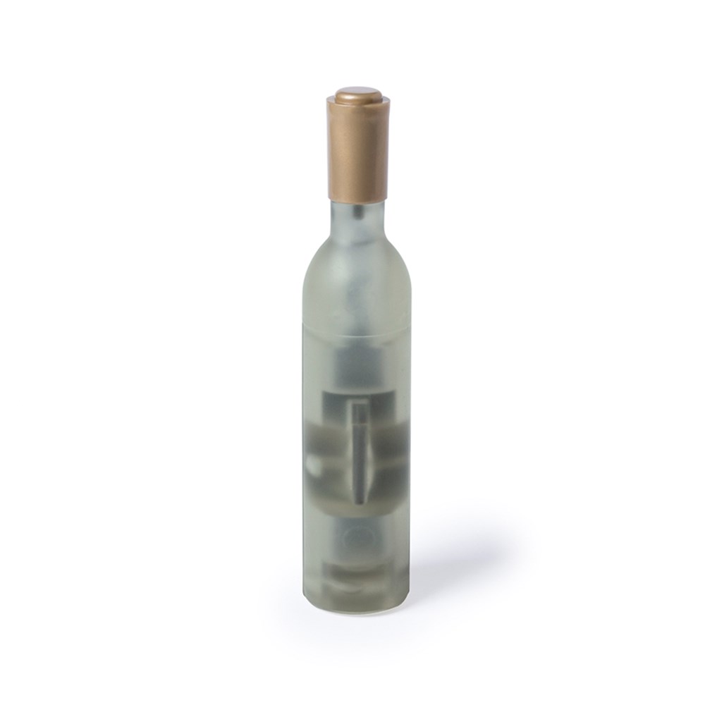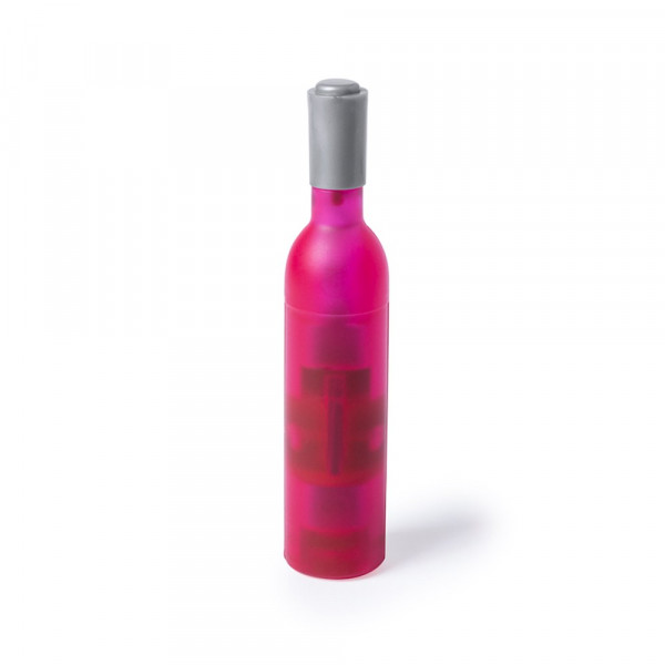 Lustiger magnetischer Korkenzieher in Form einer Weinflasche in weißer, roter und rosé Ausführung. Mit Körper in halbtransparenter Ausführung mit Flaschenöffner.