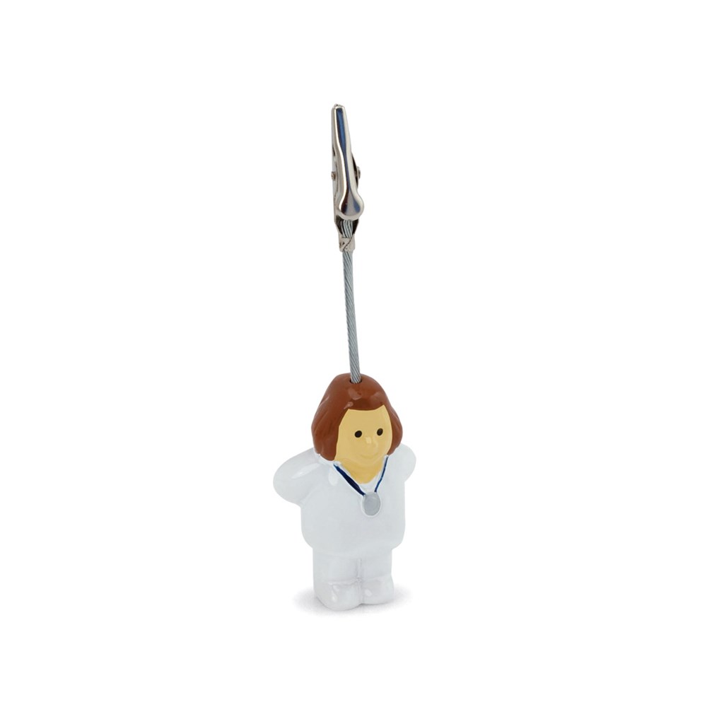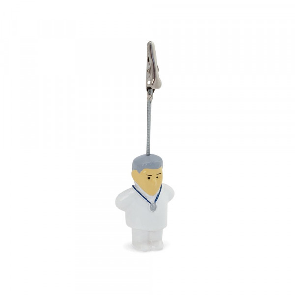 Notizhalter mit originellem Arzt-Design und Metallclip. mehr