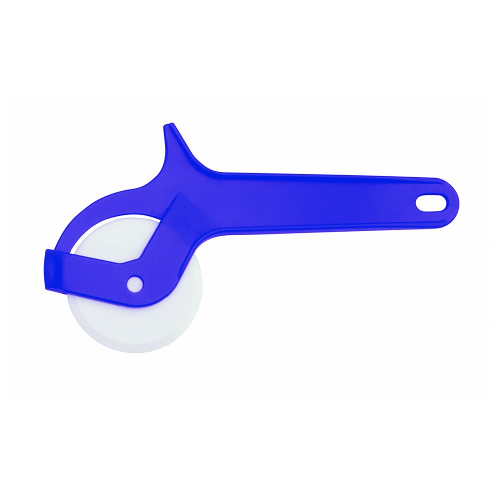 Pizzaroller in verschiedenen kräftigen Farben mit weißer Klinge und Griff mit Stanzung zum Aufhängen.