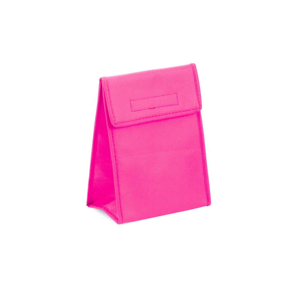 Non-Woven-Kühltasche aus Faservlies in kräftigen Farben. Mit Klettverschluss und dreieckiger Form. Isotherm-Innenraum mit Aluminium-Finish.