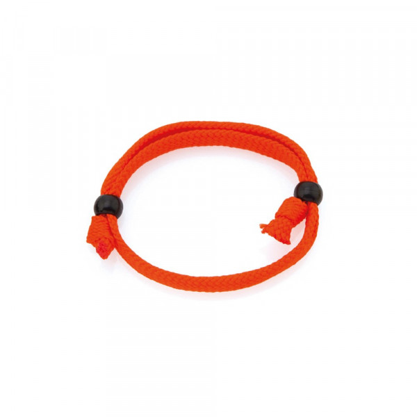 Verstellbares Polyester-Armband in einer Vielzahl von Farben. Mit geknoteten Enden und Einstellringen.
