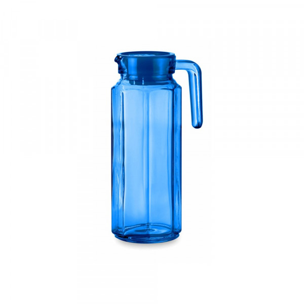 Krug aus dickem Glas mit 1 Liter Fassungsvermögen in fröhlichen Farben. Mit Sicherheitsdeckel und komfortablem Griff.