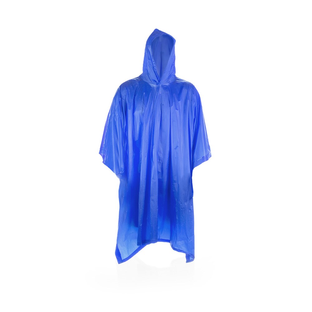 Poncho aus widerstandsfähigem, hitzeversiegeltem PEVA-Material in verschiedenen Farben. Mit Hakenverschluss an den Seiten. Präsentiert in einer individuellen, farblich passenden Tasche mit Netzeinsatz sowie Kordel mit Stopper. Einheitsgröße für Erwachsene.