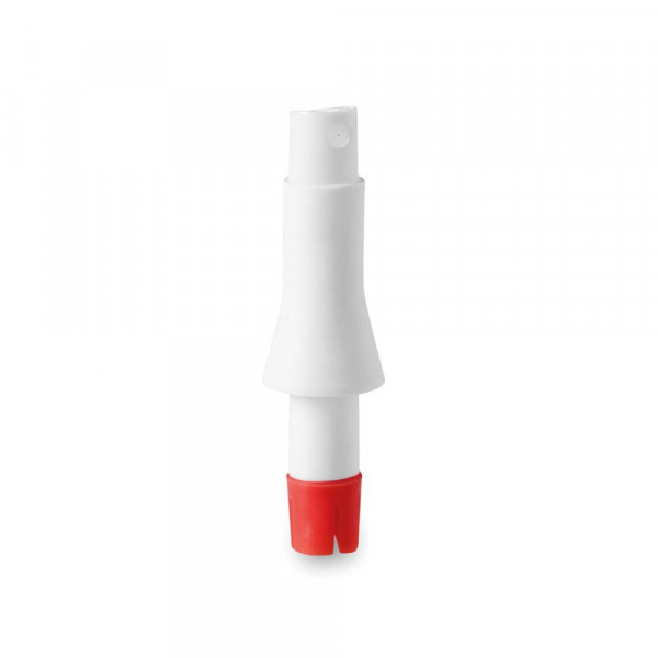 Spray-Aufsatz für Zitrusfrüchte. Durch einfaches Einstechen des Aufsatzes in die Zitrusfrucht und Drücken des Knopfes, wird der Saft der Frucht entzogen.