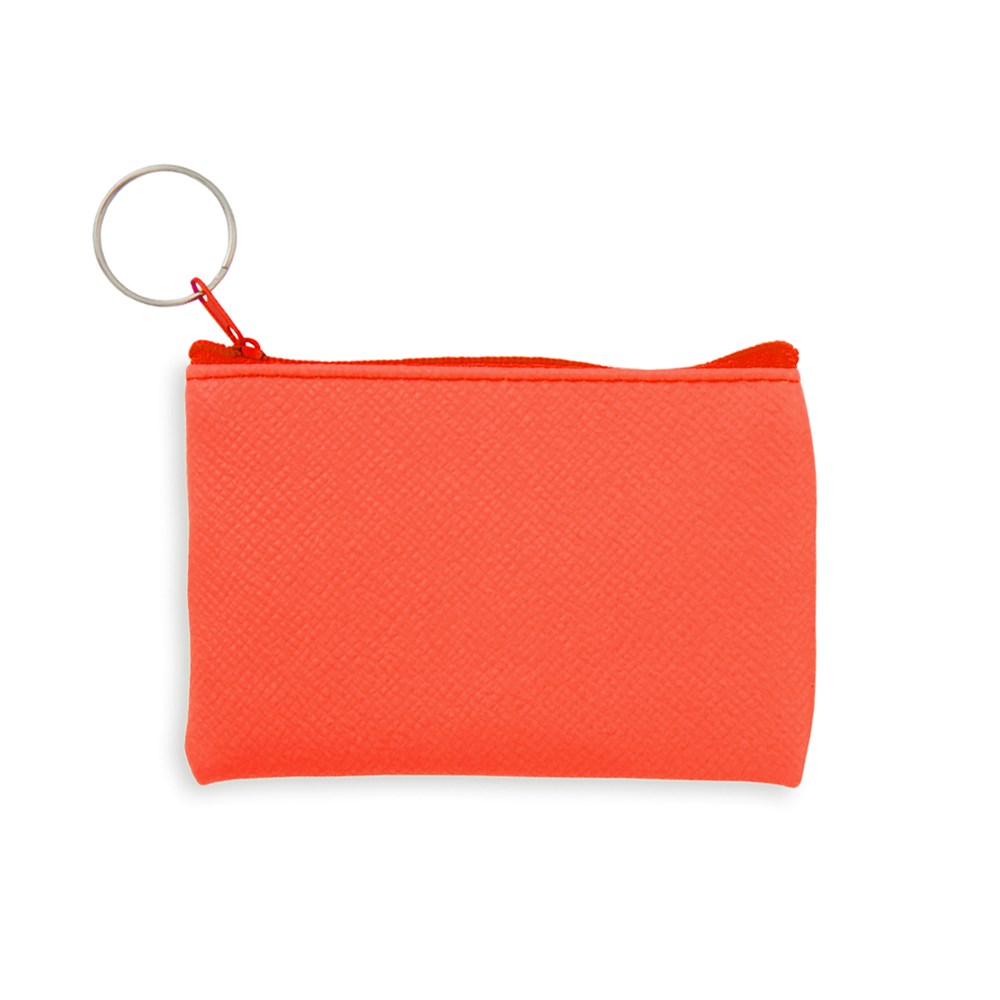 Geldbörse mit quadratischem Design aus weichem PVC in verschiedenen Neonfarben. Hauptfach mit Reißverschluss, farblich passend zum Schlüsselring.