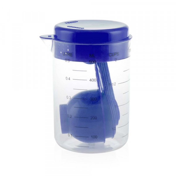 Messbecher-Set mit Behältern von verschiedenen Größen und Maximalmenge von 500 ml. Transparenter Becher mit Sicherheitsdeckel in verschiedenen lebendigen Farben. Enthält 7 farblich passende, kleinere Messbehälter in verschiedenen Größen. Präsentiert in einer individuellen Box.
