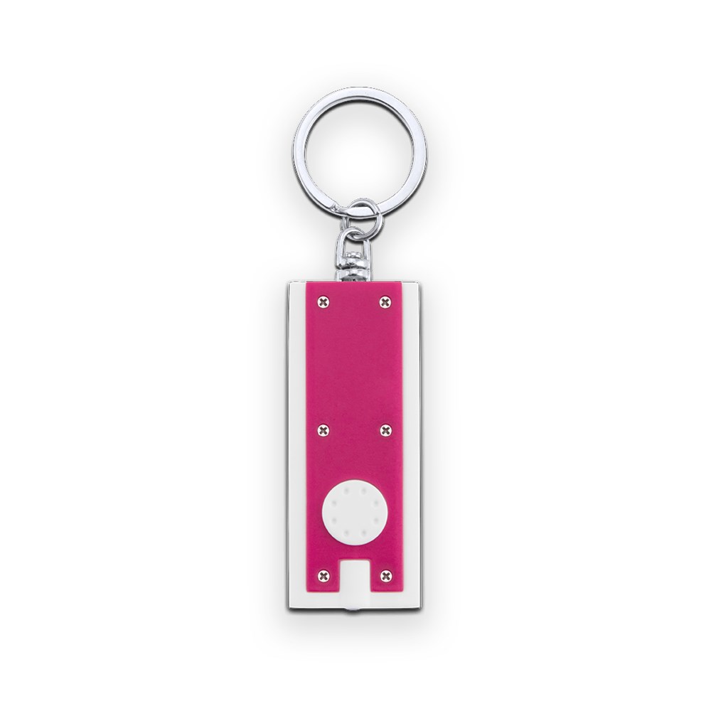 LED-Taschenlampe mit Schlüsselring und extra flachem Design in glänzenden Farben. Knopfzellen inklusive.