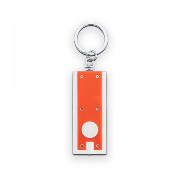 LED-Taschenlampe mit Schlüsselring und extra flachem Design in glänzenden Farben. Knopfzellen inklusive.