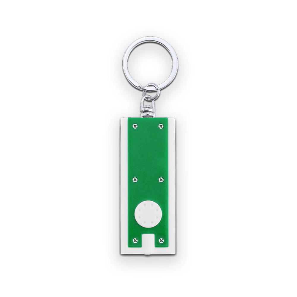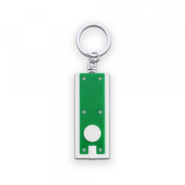 LED-Taschenlampe mit Schlüsselring und extra flachem Design in glänzenden Farben. Knopfzellen inklusive.