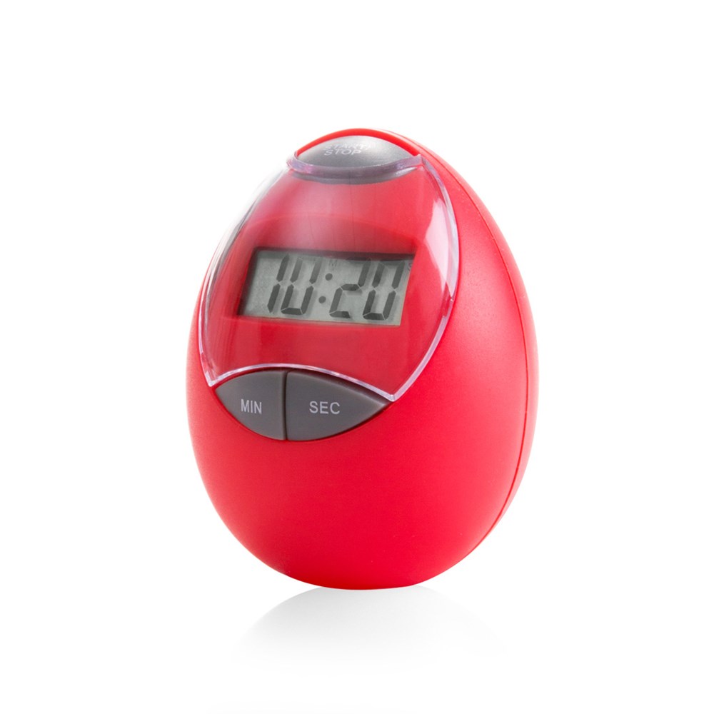 Digitaler Timer mit Ei-Design in kräftigen Farben mit transparentem Deckel. Bietet Timing von bis zu 100 Minuten sowie eine Stoppuhr-Funktion. Batteriebetrieben - 1 x AAA nicht inklusive. Präsentiert in einer individuellen Box.