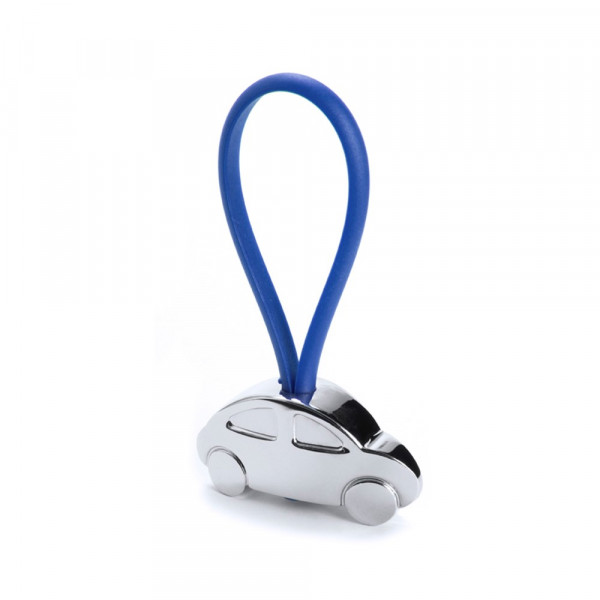 Metall-Schlüsselanhänger mit elegantem Auto-Design in 3D. Mit Gummiband in verschiedenen lebendigen Farben für die Befestigung der Schlüssel.