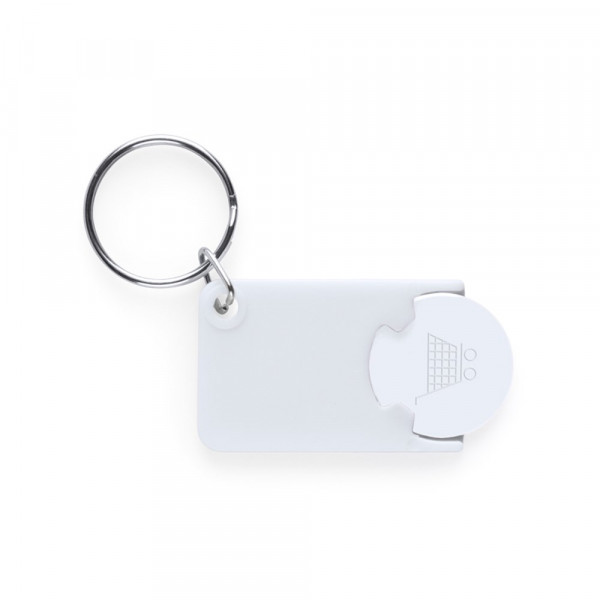 Münz-Schlüsselanhänger mit fröhlichem zweifarbigem Design in verschiedenen Farben und herausnehmbarer Münze.