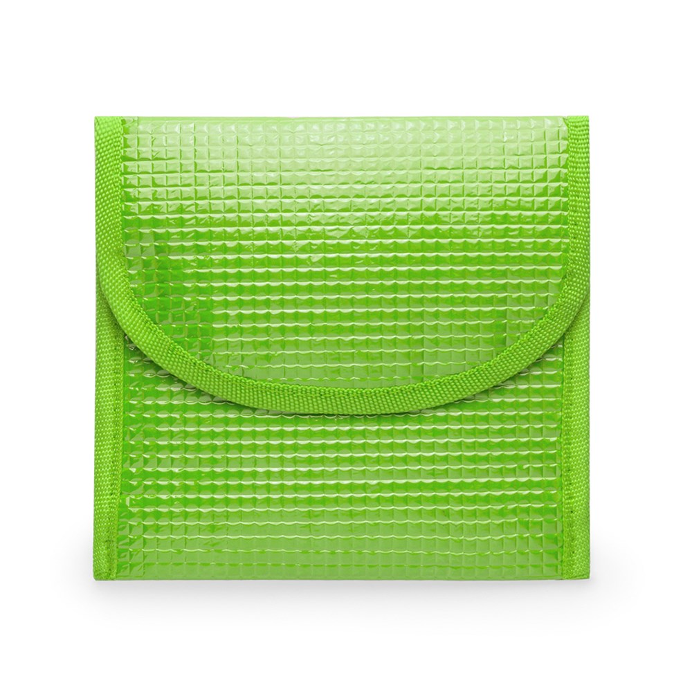 Thermo-Tasche aus robustem PET in verschiedenen Farben. MIt Klappenverschluss mit Klettverschluss und Isotherm-Innenraum aus Aluminium.