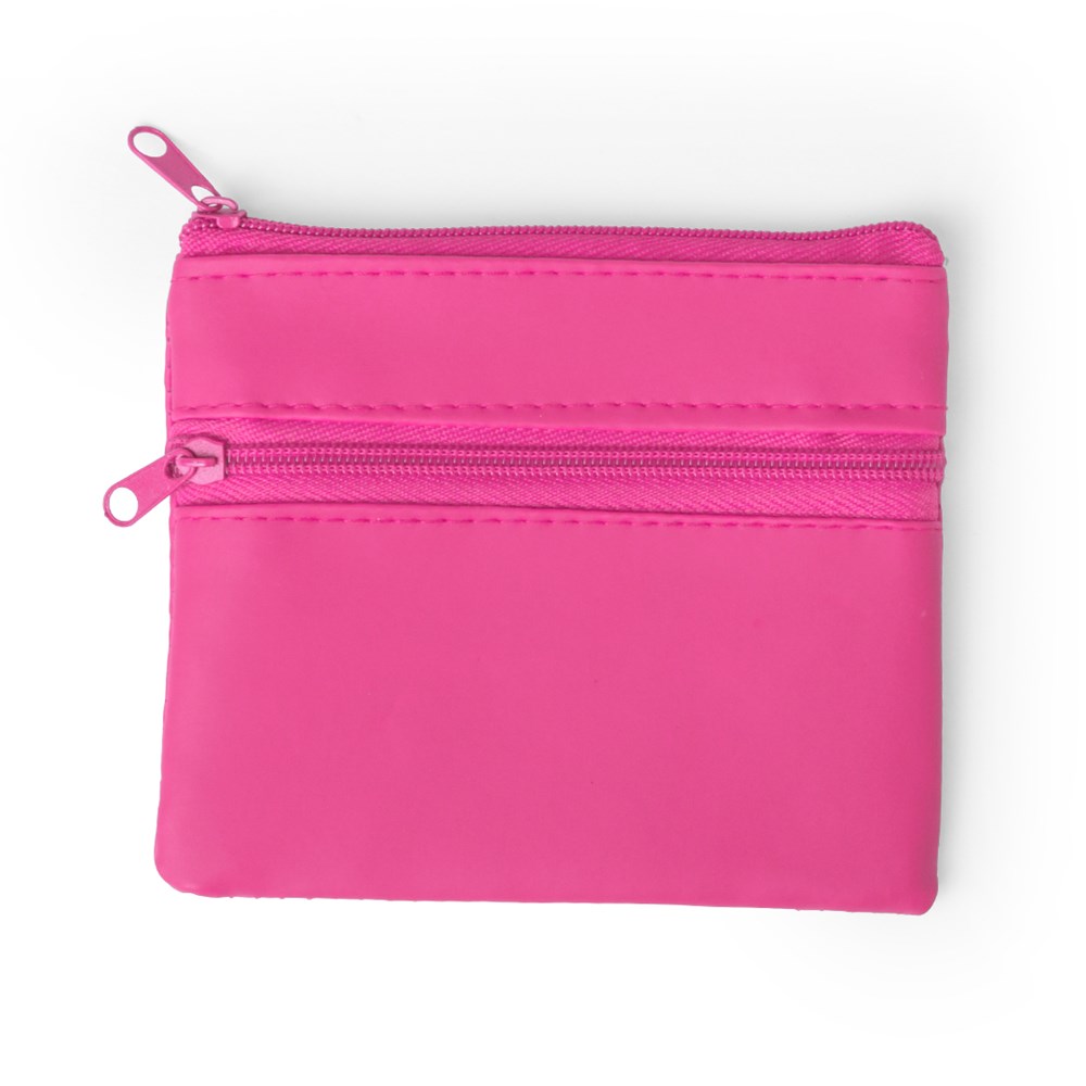 Geldbörse mit lebhaftem Design aus weichem Kunstleder in verschiedenen kräftigen Farben. Hauptfach und Fronttaschen mit farblich passendem Reißverschluss. Innenfutter in passender Farbe.