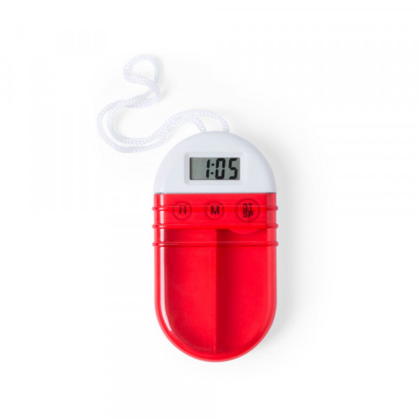 Pillendose mit Timerfunktion aus robustem Material in Weiß mit transparentem Deckel in kräftigen Farben. Mit digitalem Timer und zwei Fächern für Pillen im Inneren. Knopfzellen inklusive. Präsentiert in einer attraktiven Designbox.