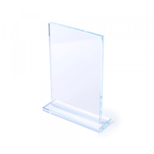 Trophäe aus dickem Glas mit elegantem rechteckigem Design und robustem Standbein. Speziell für den Laserdruck entwickelt. Präsentiert in einem individuellen Schutzcase.